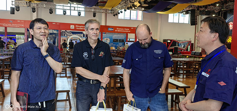 展会期间,百威全球酒厂支持副总裁带领百威各大区酒厂支持负责人一行来到黄山广东会公司展位,驻足观展,并与参展负责人深入交流,了解“黄山牌”链条(链网)产品特色,以及企业技术创新、生产经营等情况。希望共同挖掘合作潜力,拓展合作空间,建立强大的战略合作伙伴关系。