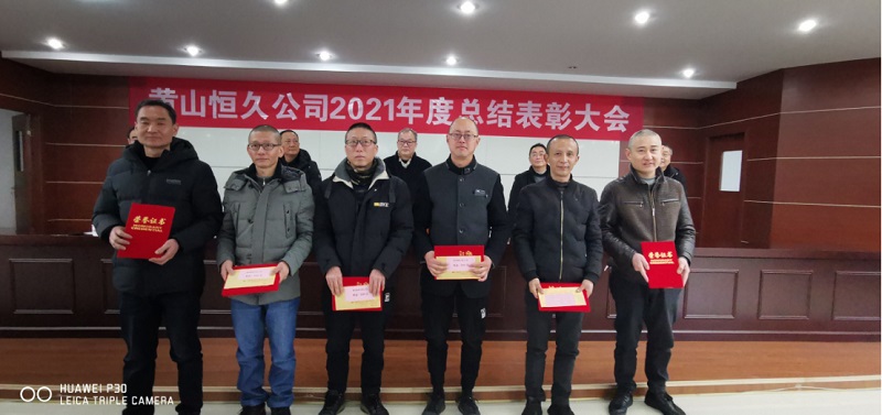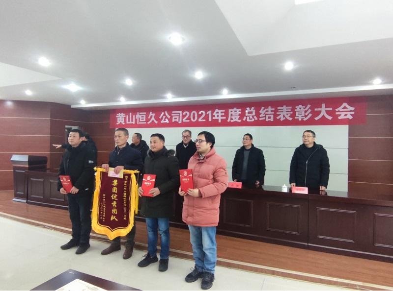 牛耕绿野千仓满,虎啸黄山百业兴。1月28日下午,黄山广东会公司2021年度总结表彰大会隆重召开。会议总结回顾了2021年度各项工作,表彰奖励了一年来在生产经营工作中涌现出的先进集体和个人,安排部署了2022年各项工作。公司党委书记、总经理陈亦兵作了题为《坚定发展信心 鼓足超越干劲 努力对标建设国家级专精特新重点“小巨人”企业》的工作报告。公司领导班子成员、各车间(处室)负责人、受大会表彰的各级各类先进集体负责人以及先进人员、第四届黄山广东会工匠100多人参加会议。会议由公司党委副书记、工会主席、总经理顾问周平主持。