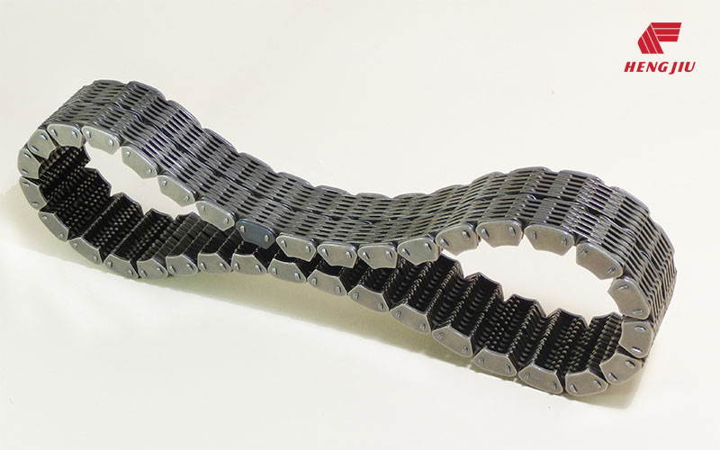 滚销式齿形链(双销轴齿形链)是在单轴齿形链基础上发展起来的。根据实验,滚销式齿形链的耐磨损性能是单轴齿形链的7倍,是同节距齿形链的15倍以上。越来越多应用领域比如汽车发动机、变速箱、分动箱、物料搬运等领域开始采用滚销式齿形链。我司拥有多项专利。